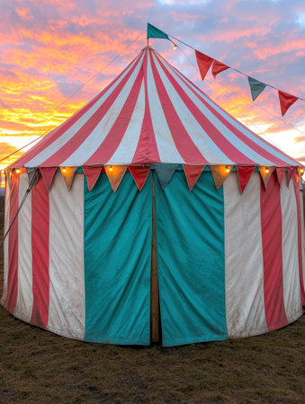 colorful circus tent at sunset