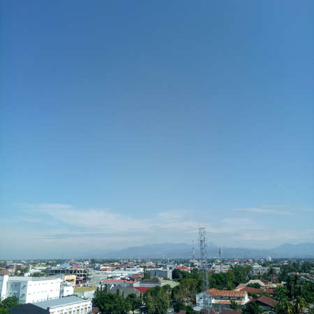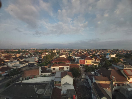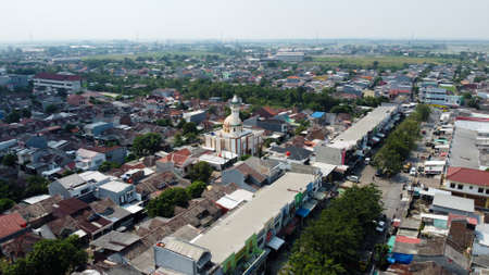 Aerial view of beautiful view in the morning at solo city. Solo, Indonesia, December 6, 2021