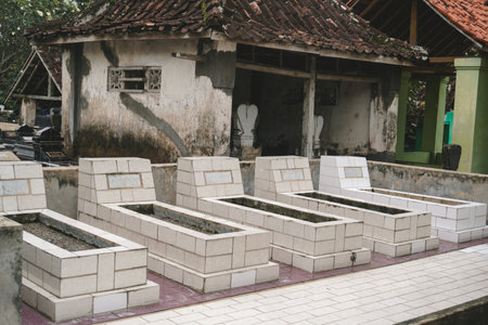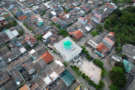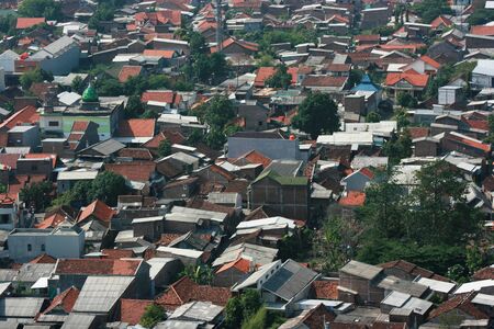 Top view of dense residential houses at morning time in Yogyakarta city, Indonesia