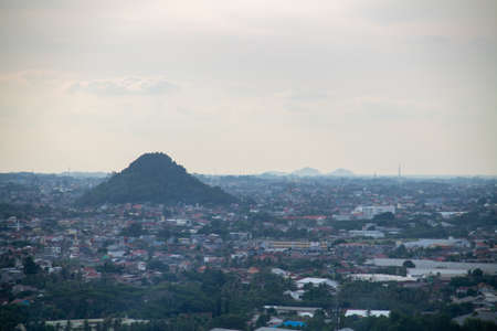 Aerial view of countryside a city view near the central market in the city Nonthaburi Province, Thailand, There is an empty space on top for the design.