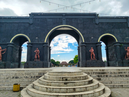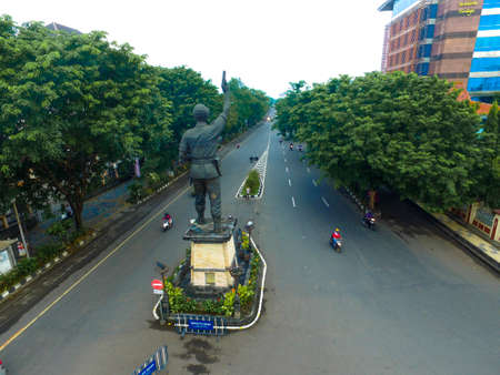 Surakarta, Indonesia – December 20, 2021: Gladak Statue or the Slamet Riyadi Statue is a form of appreciation to Captain Slamet Riyadi in the city of Solo in the afternoon. Jalan Tugu Slamet Riyadi