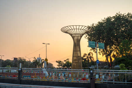 Surabaya, Indonesia - May 16, 2021: sawunggaling bridge decoration building in surabaya