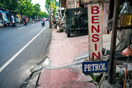 Signboard of gasoline station on the roadside of Ubud town, Bali, Indonesia