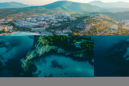 Generative AI : Aerial view of Ammoglossa beach Keramoti Greece at Sunset