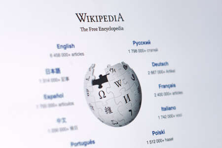 San Pellegrino terme, Italy - may, 2, 2022: Detail of the wikipedia homepage on a laptop monitor