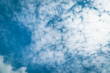 Bright blue sky and white cloud on a sunny day. The sky filled with cloud.