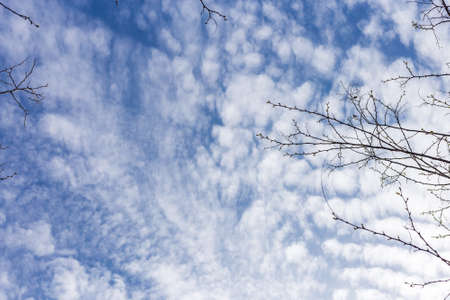 Beautiful blue sky with small white clouds. Nature background. Blue sky background.