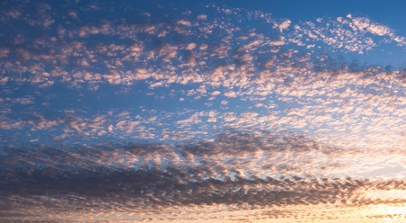Cirrocumulus cloud on bright blue summer sky with sunrise in the early morning