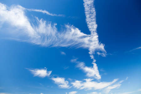 Beautiful white Cirrus clouds on a blue sky.