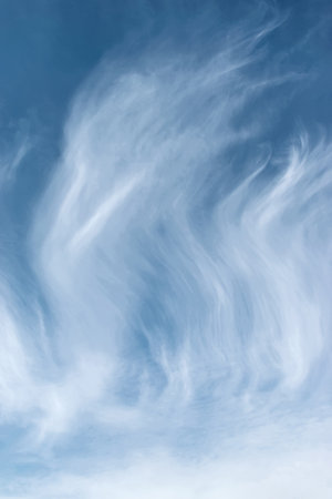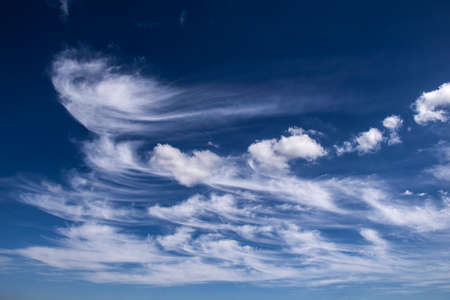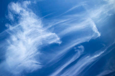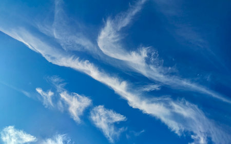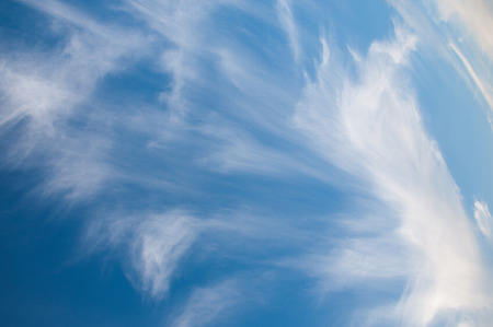 Wind swept white clouds and blue sky on a sunny day