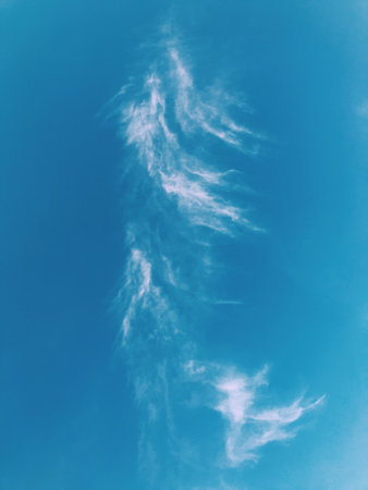 unusual vertical white clouds and blue sky