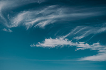 Soft, wispy cirrus clouds in a vast blue sky. Ideal for a serene nature background or texture