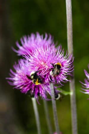 beautiful bright Thistle flower, plants with the Latin name Carduus on a green natural background, narrow focus area