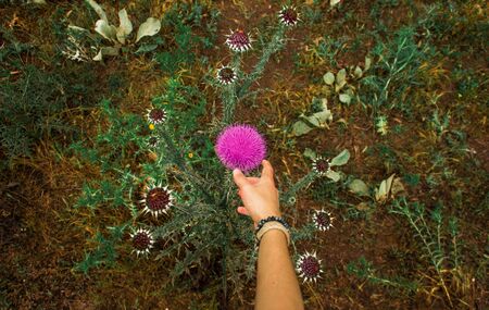 A field thistle with a purple flower near the castle de Crussol - Ardèche - France
