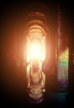 Flooded Arched Tunnel with Columns and Reflections