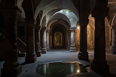 Underground cistern in Istanbul with majestic columns., generative AI