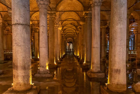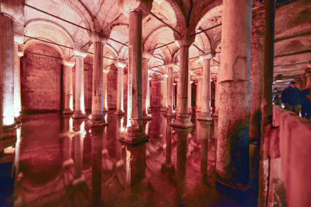 ISTANBUL - SEPTEMBER 16: Underground Basilica Cistern, September, 2014 in Istanbul, Turkey. It is 143m long and 65m wide underground water container, the one of most popular tourist attraction