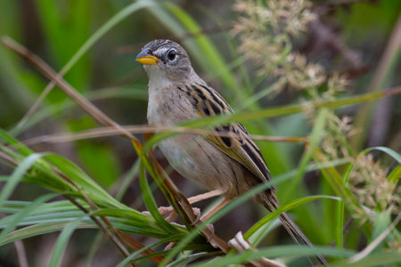 Close up of a Wedge-tailed Grass Finch (Emberizoides herbicola) male in the grass