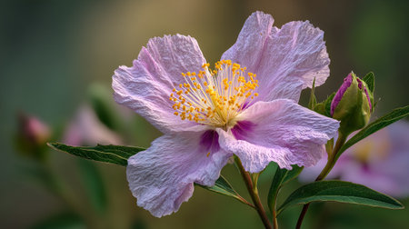 Rock Rose flower beautifully bloomed with natural background. Created by Generative AI.