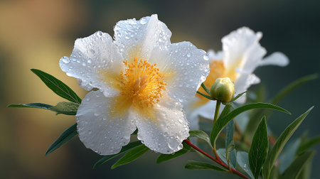 Dew-Kissed White Flower Blooms Radiating Elegance in a Close-Up Floral Portrait