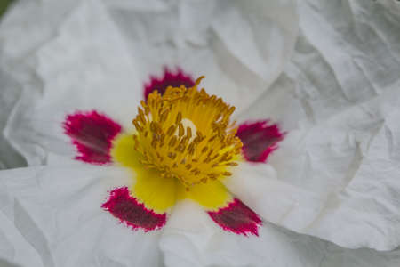 Cistus ladanifer or gum rockrose or labdanum or common gum cistus or brown-eyed rockrose flower
