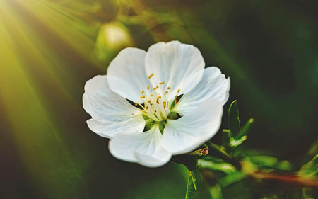 A beautiful display of softly blooming flowers illuminated by gentle sunlight, creating an enchanting atmosphere that embodies the serene beauty of nature in springtime.