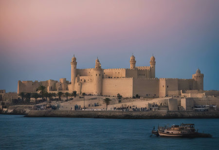 view of the Qaitbay fortress built on the site of the destroyed sixth wonder of the world of the Alexandrian lighthouse