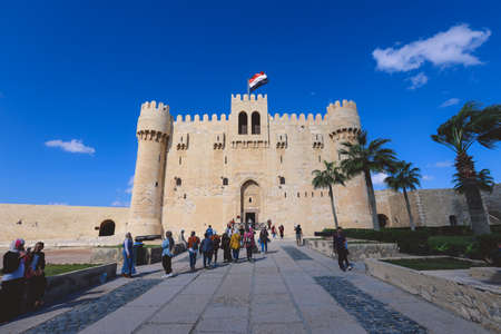 ALEXANDRIA, EGYPT - FEBRUARY 2, 2019: People visit Citadel of Qaitbay (Fort of Qaitbey) in Alexandria, Egypt