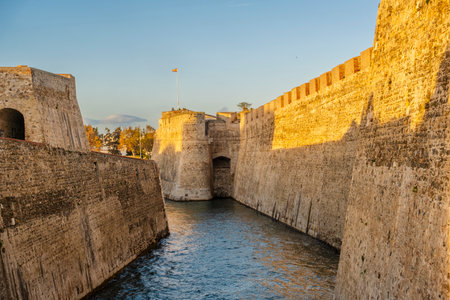 Ancient fortress near the sea waves adventure travel.