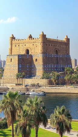 Citadel of Qaitbay or the Fort of Qaitbay is a 15th-century defensive fortress located on the Mediterranean sea coast. Ordinary people walk nearby