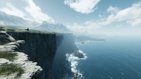 Captivating image of towering cliffs beside a sparkling ocean, contrasting with a vibrant sky, perfect for showcasing nature's stunning beauty.