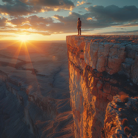 Captivated by the Vastness: A Person Standing on a Cliff --ar 3:2