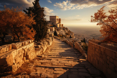 Rhodes, dodecanese, the acropolis of rods, with old ruins and panoramic views., generative AI