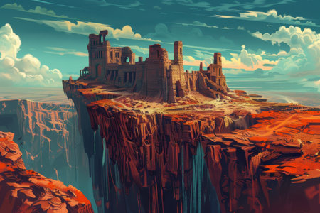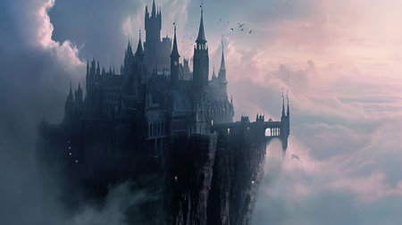 A towering castle perched on the edge of a cliff