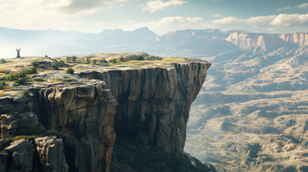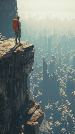 Brave Adventurer Gazing into the Abyss: A Captivating Cliffside Portrait --ar 3:2