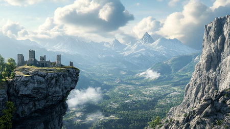 Fortress atop a Mountain. Generative AI