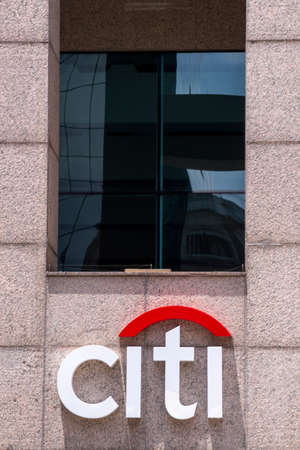Sao Paulo, Brazil - december 29 2019 - Closeup of the lettering and logo of citi bank branch. Facade of bank branch, advertising sign and logo