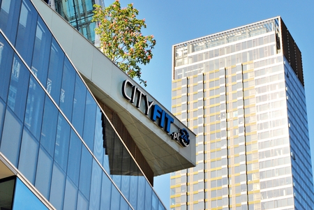 Bucharest, Romania - September 23, 2021: Shallow depth of field (selective focus) image with City Insurance logo on the building HQ in Bucharest.