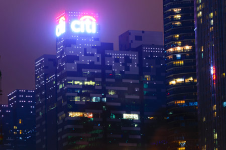 Warsaw, Poland. 21 November 2024. Citi logo sign on the office building in the night. American bank corporate. Banking company signboard with the iconic brand logotype.