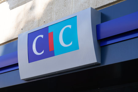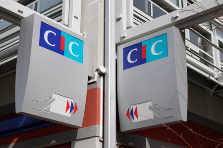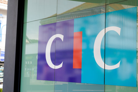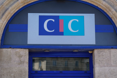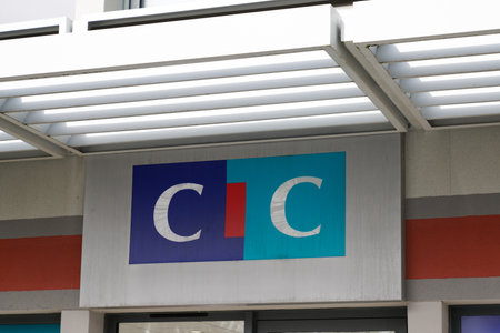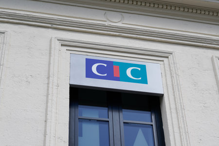 Cholet, France - June 25, 2016: CIC logo on a wall. CIC is a financial services group in France, founded in 1859 with its parent-company, Credit Mutuel it is the fourth largest bank in the country