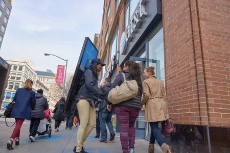 NEW YORK - CIRCA MARCH, 2016: woman with AT&T advertising poster panel. T&T Inc. is an American multinational telecommunications corporation, headquartered at Whitacre Tower in downtown Dallas, Texas.