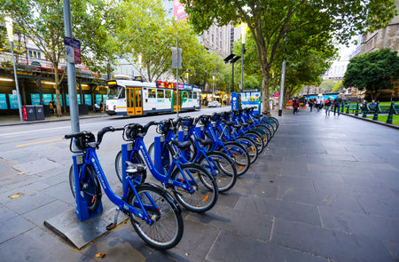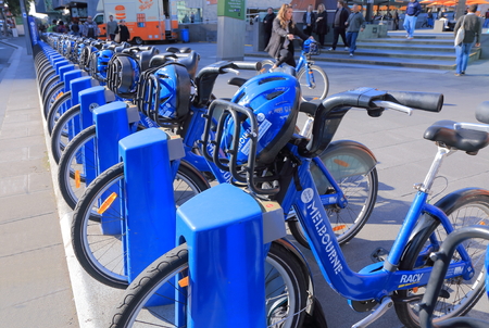 MELBOURNE, AUSTRALIA - MARCH 15, 2018 : Melbourne Bike Share, the famous bicycles sharing for hire and explore the city.