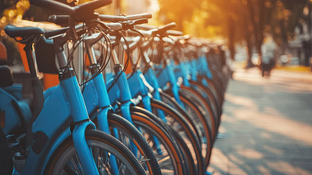 A bicycle rental station in the city where you can rent clean and well-maintained bicycles. ai generative