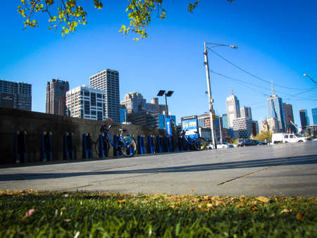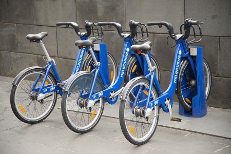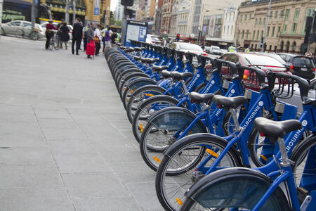 Melbourne Australia - July 16, 2016 People hire bicycles in Melbourne downtown Australia.