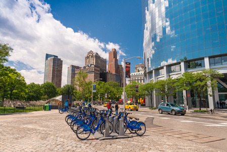 NEW YORK - APRIL 8: Citibike view near Franklin street on April 8, 2016 in Lower Manhattan, New York City, NY, USA.