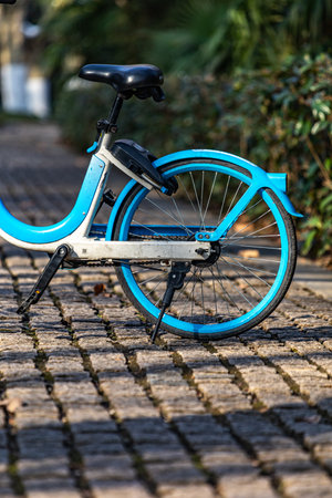 Limassol Cyprus March 13, 2020 View of bicycle to hire parked in the streets of Limassol in the afternoon