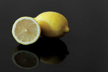 Fresh lemon, dark reflective background