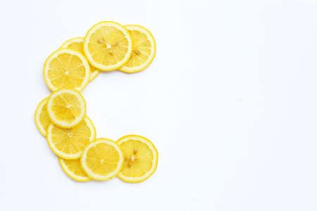 High vitamin C, Letter C made of lemon slices isolated on white background. Copy space