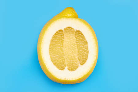 Fresh lemon on blue background.