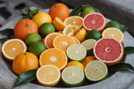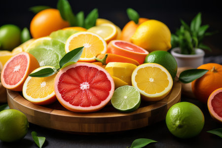 So vibrant, so healthy. a variety of citrus fruits cut into slices on a plate.